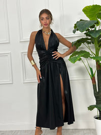 Abito lurex con drappeggi e spacco
