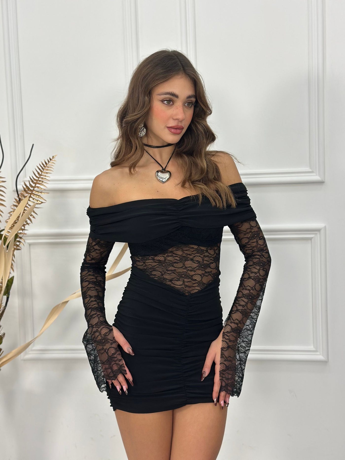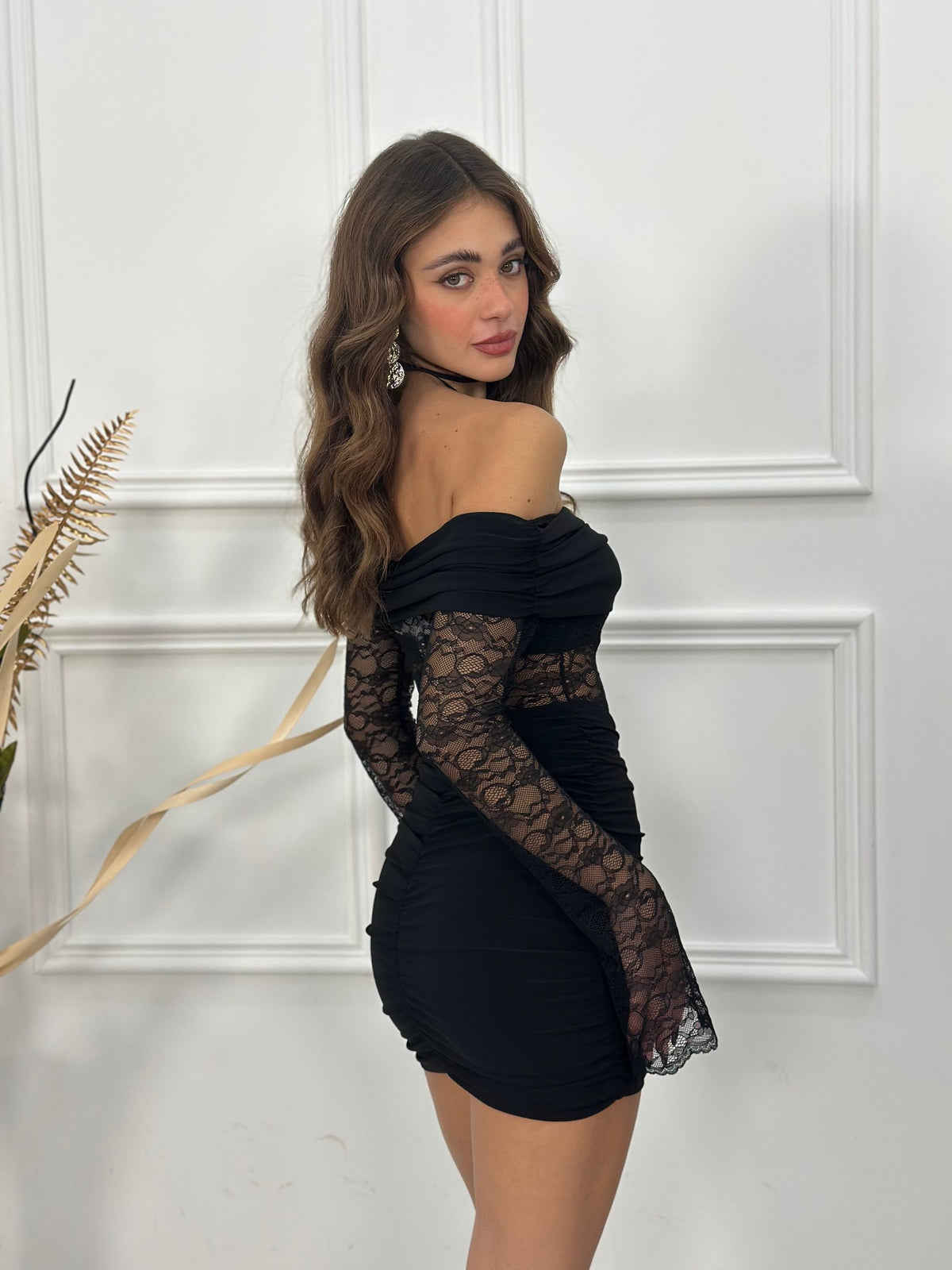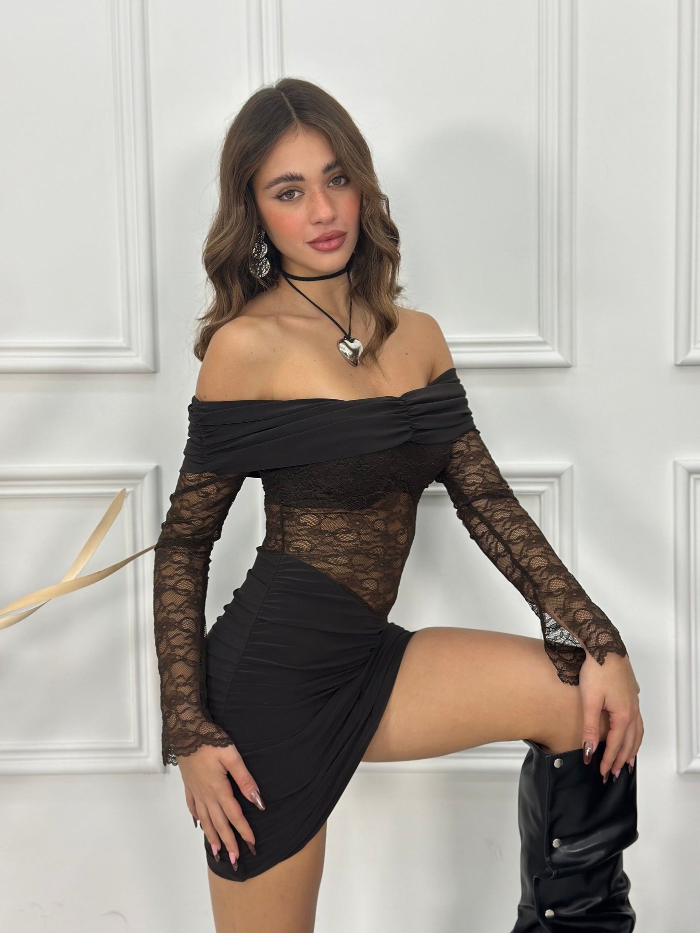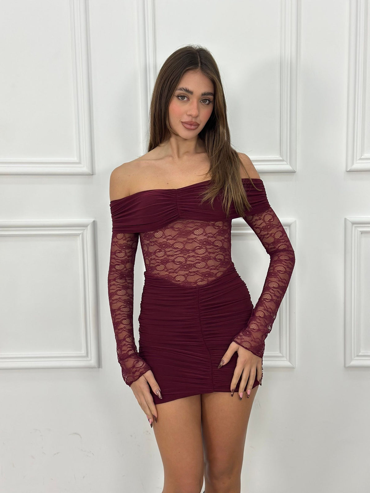 Abito scollo a barca con drappeggi