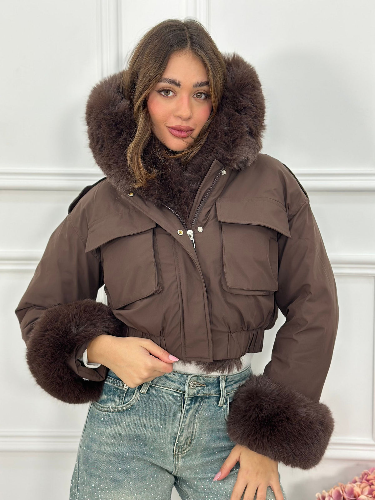 Giubbotto Crop Top Quality J8526 - Coffee / M/L