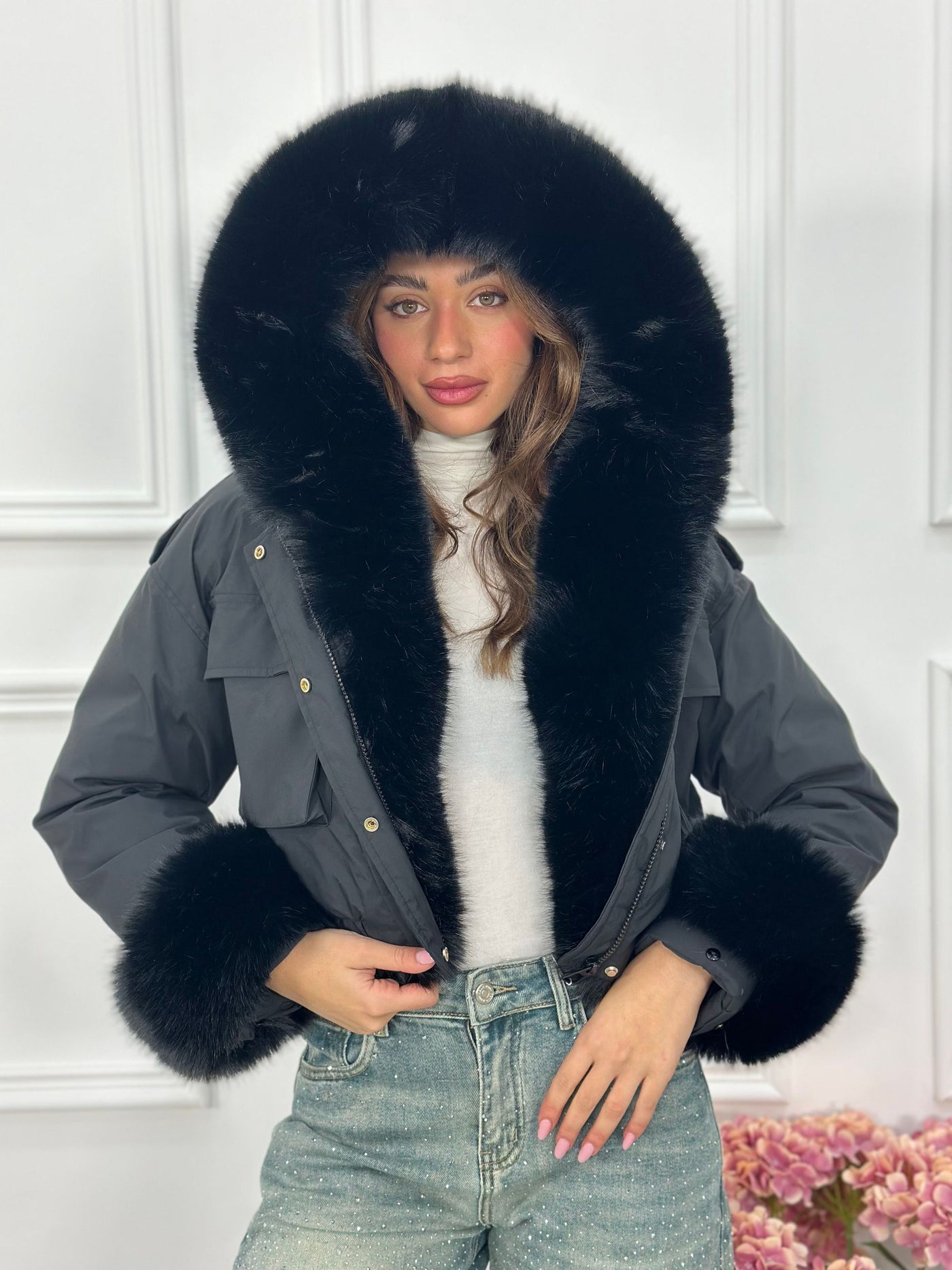 Giubbotto Crop inbottito piuma con pelliccia removibile Top Quality