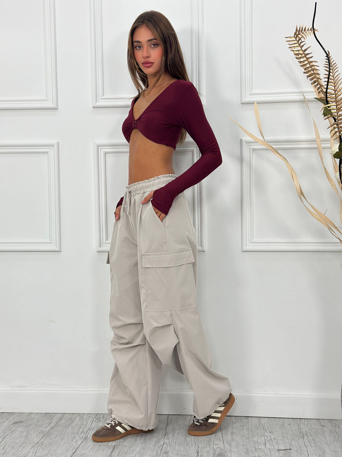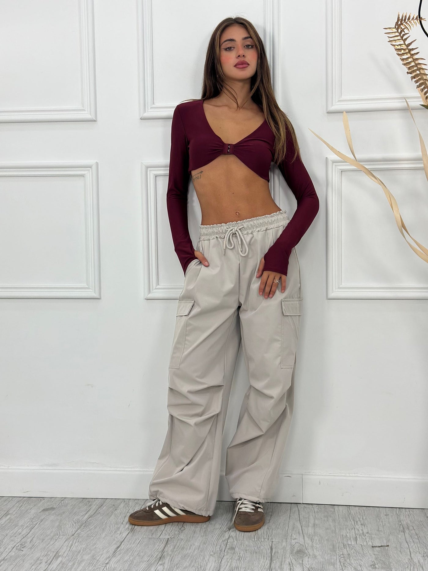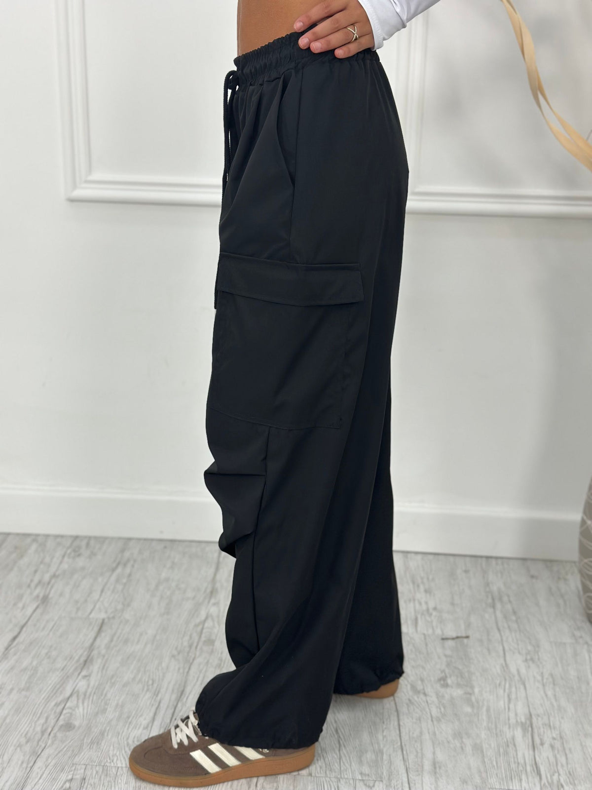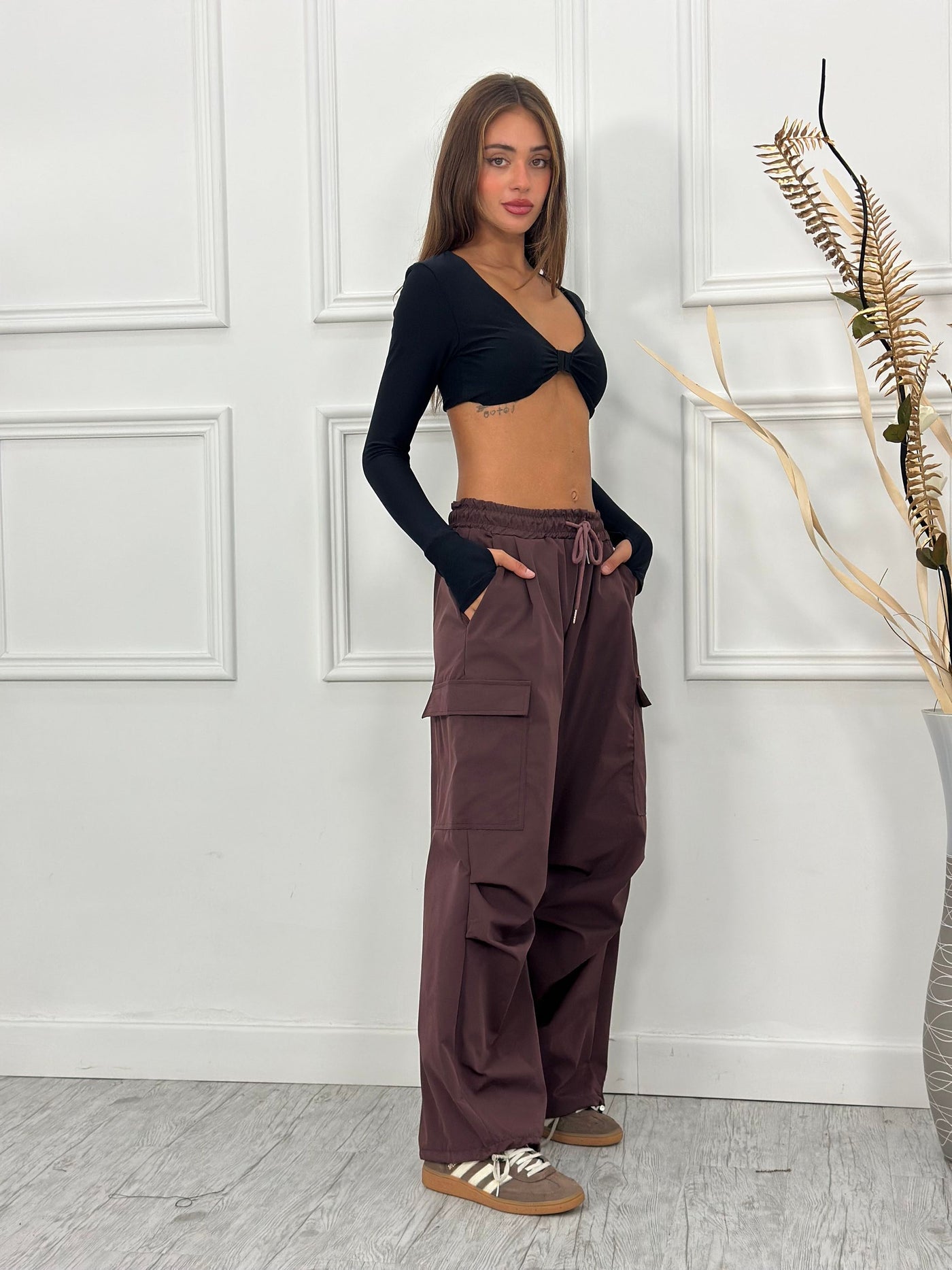 Pantalone cargo con elastico caviglie