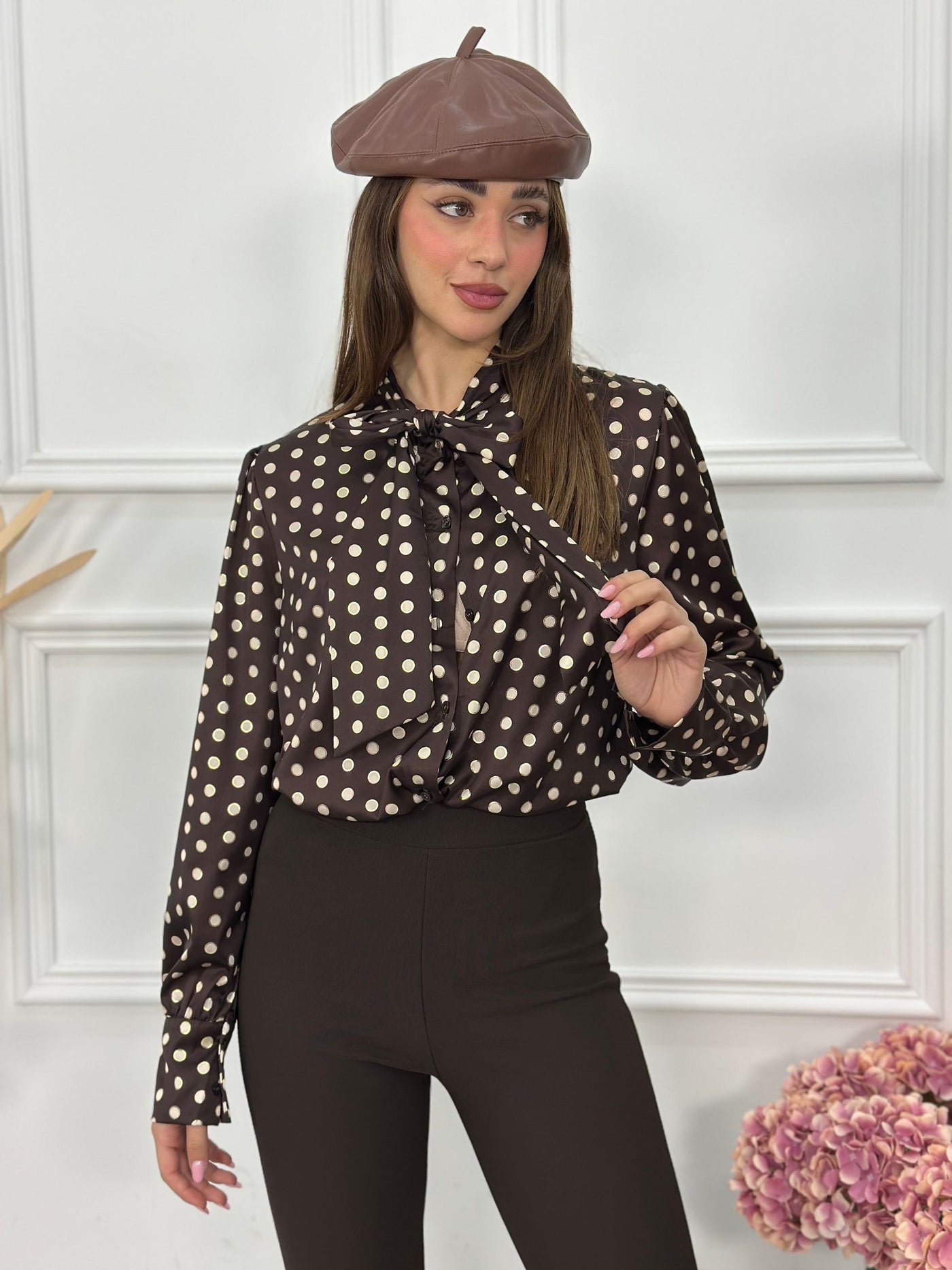Camicia pois con fiocco in raso