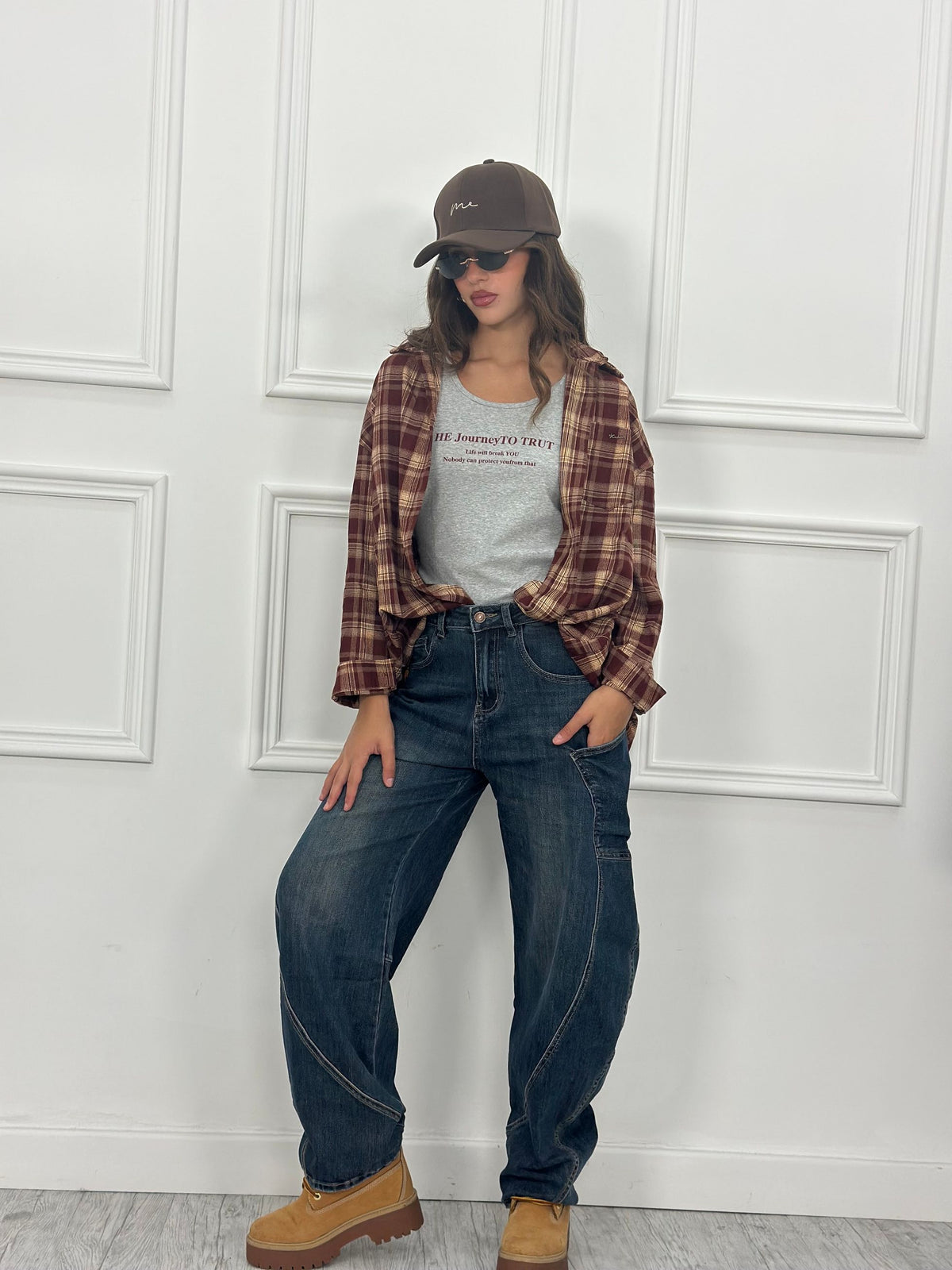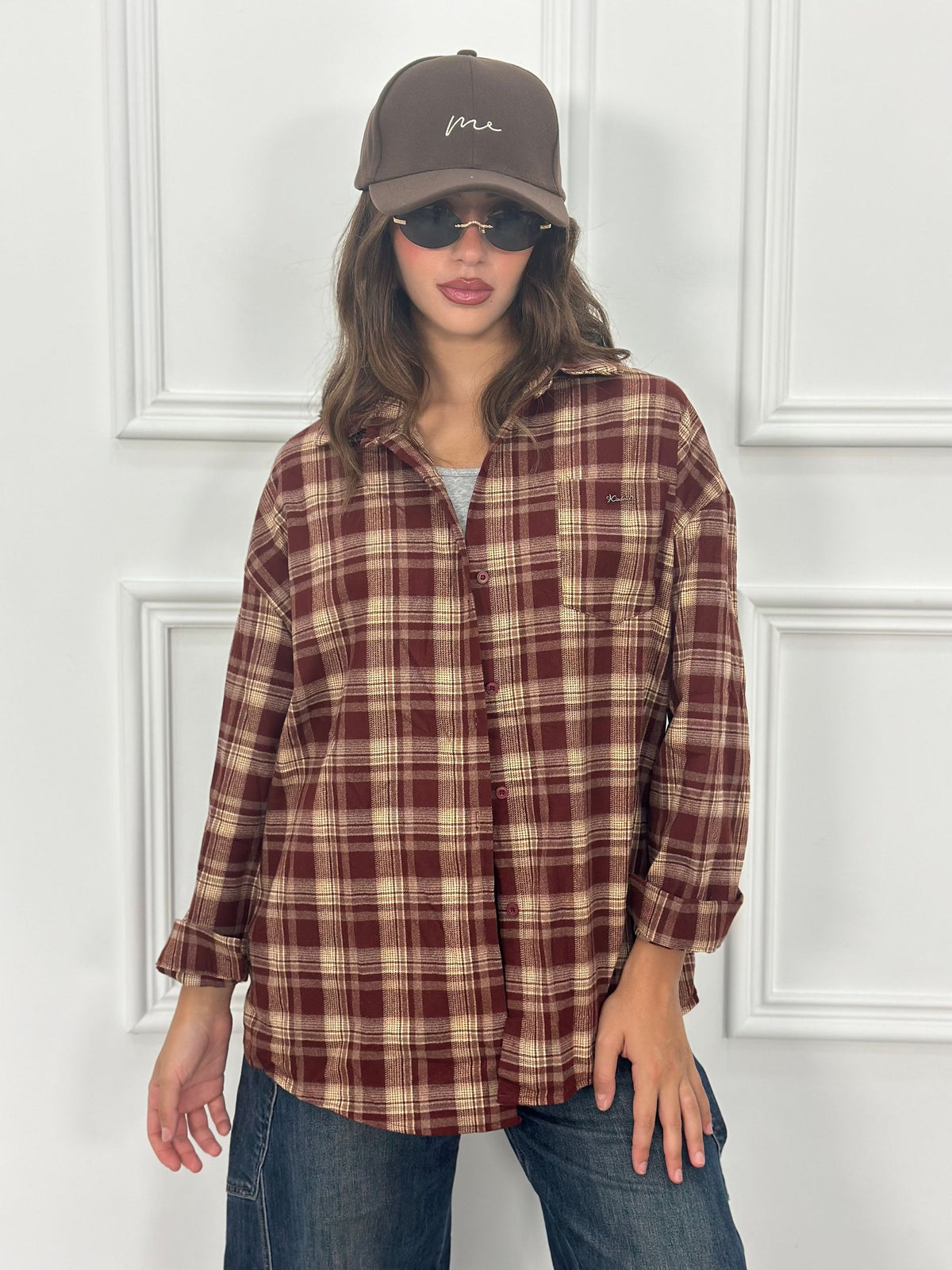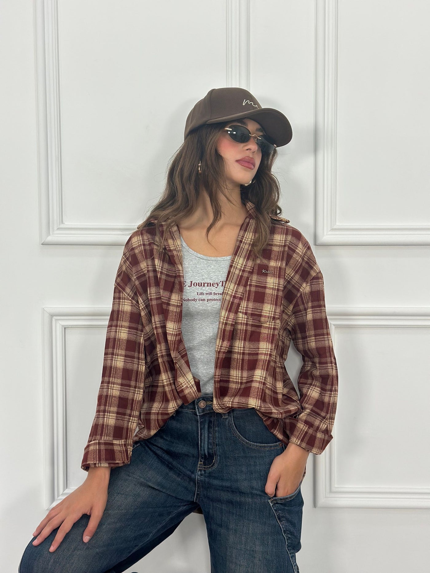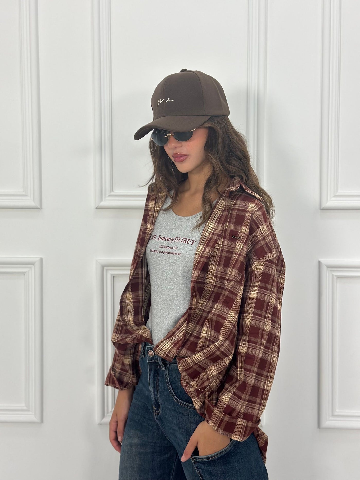 Camicia quadri+canotta crop 55121 - Bordeaux / Taglia Unica