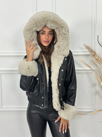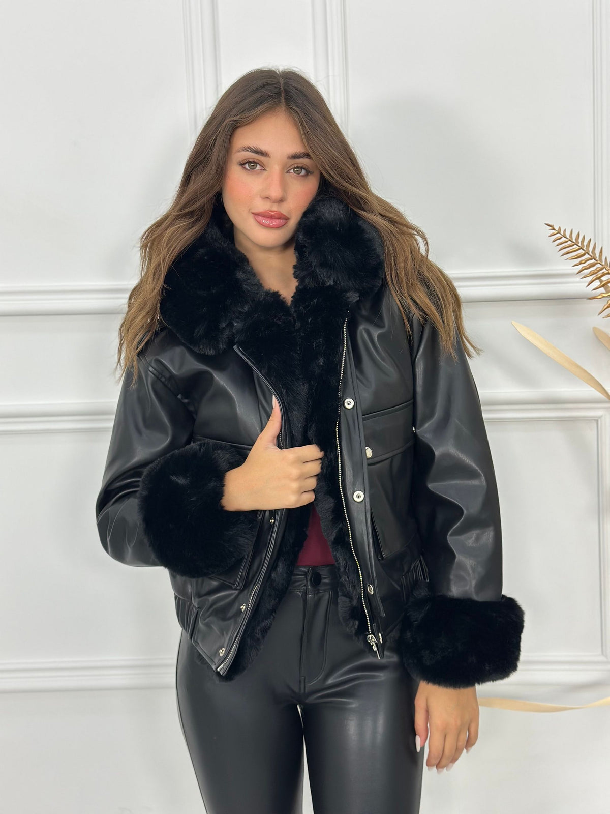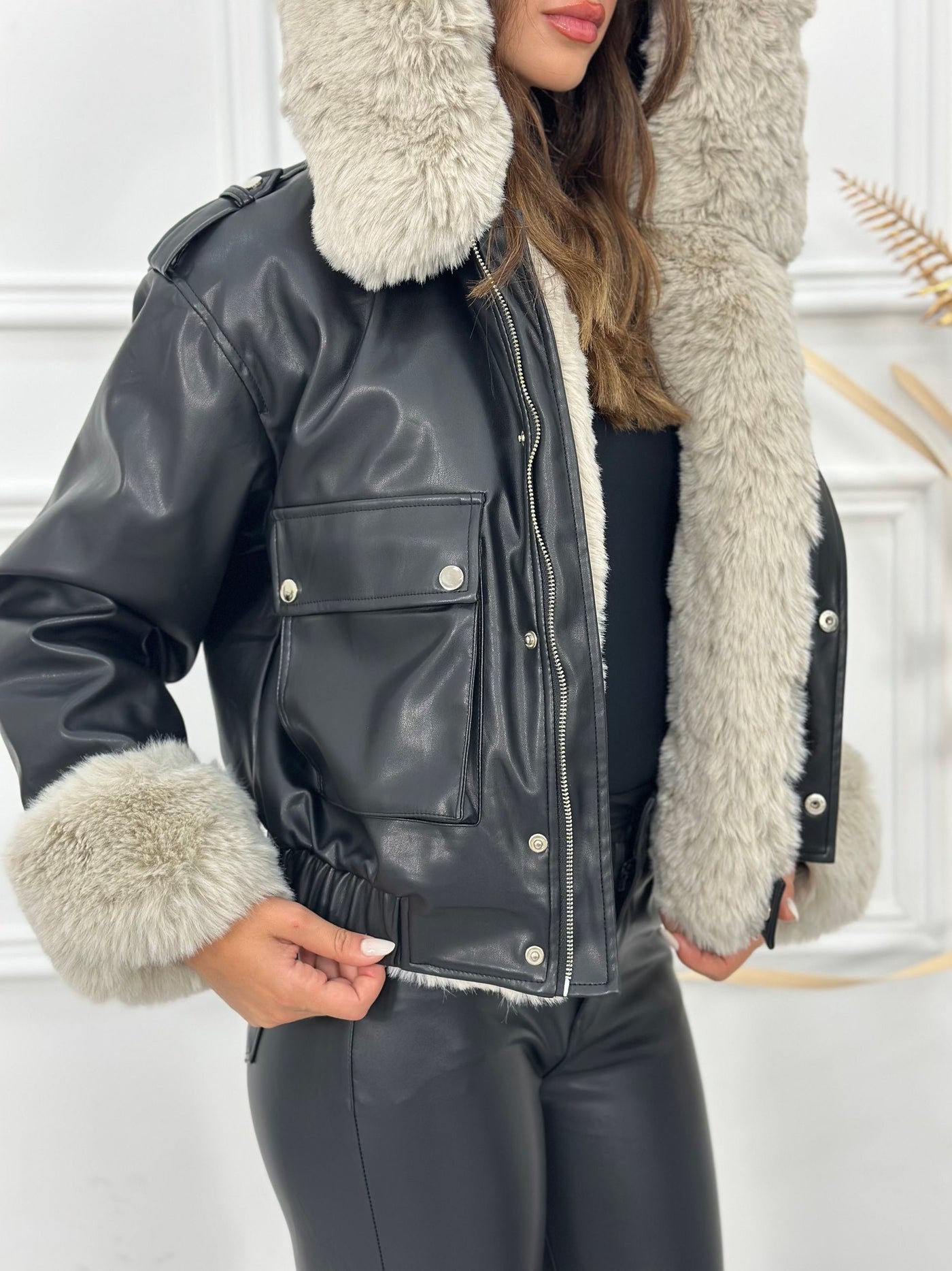 Giubbino Ecopelle AY918 - Nero ecopelliccia beige / XL