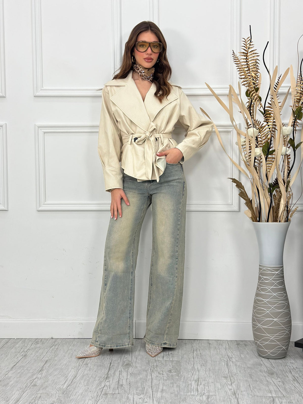 Jeans palazzo elasico con piegone